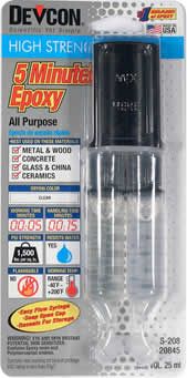 5 Minute epoxy is excellent for jobs that require a quick set time. We often use this epoxy to coat and build palm key risers on saxophones. It is flexible and does not shrink when it sets.