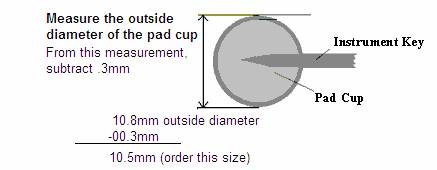 1. If you are measuring the pad cup while the key is on the instrument. Measure the outside diameter of the pad cup. Subtract 0.3mm from that measurement.