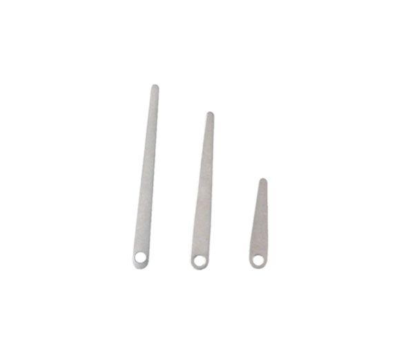 These flat springs are soft enough to take a bend and resist breaking, yet hard enough to provide a snappy feel. Stamped from stainless steel sheets rather than laser cut, it allows the spring to take a slight curve on the side that comes in contact with the body and spring cradle, and the opposing side gives you more grip where it attaches to the key. The flat springs are currently available in 3 different thicknesses and 3 different lengths.